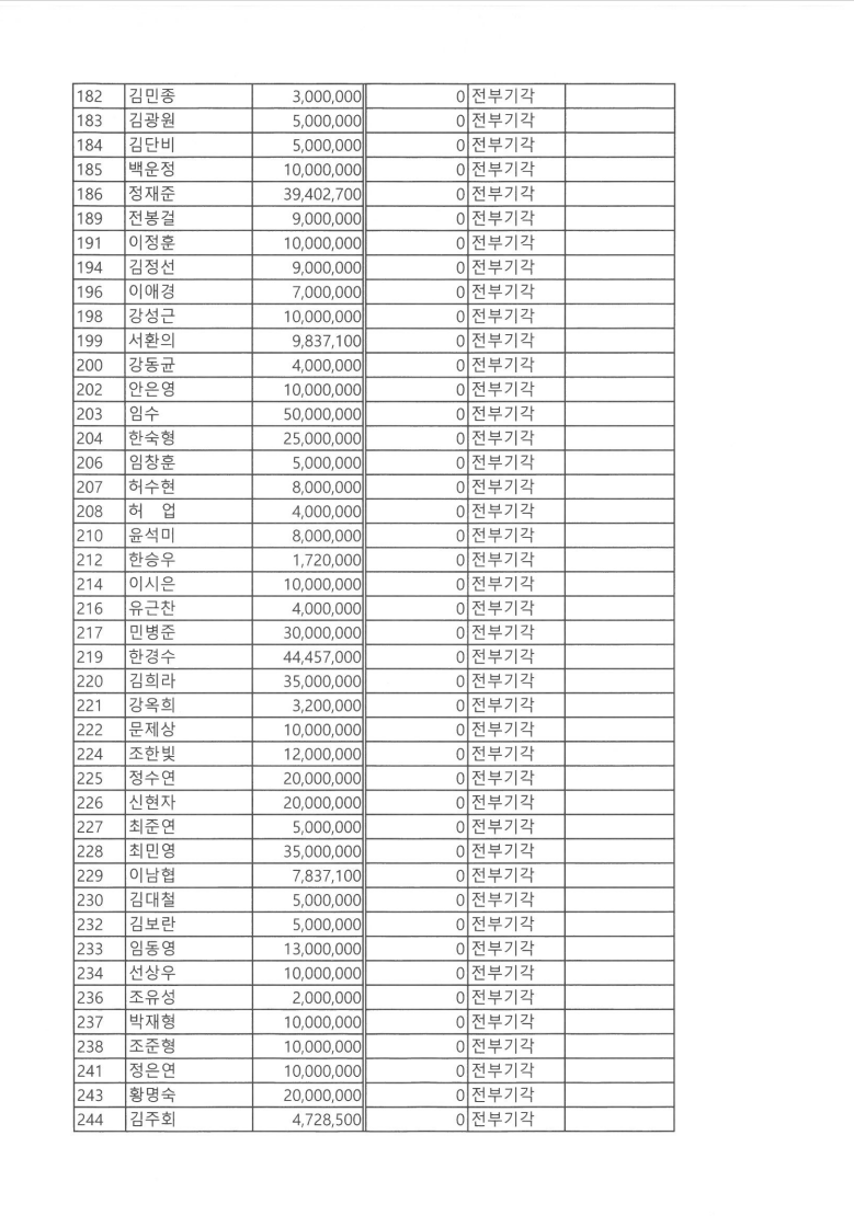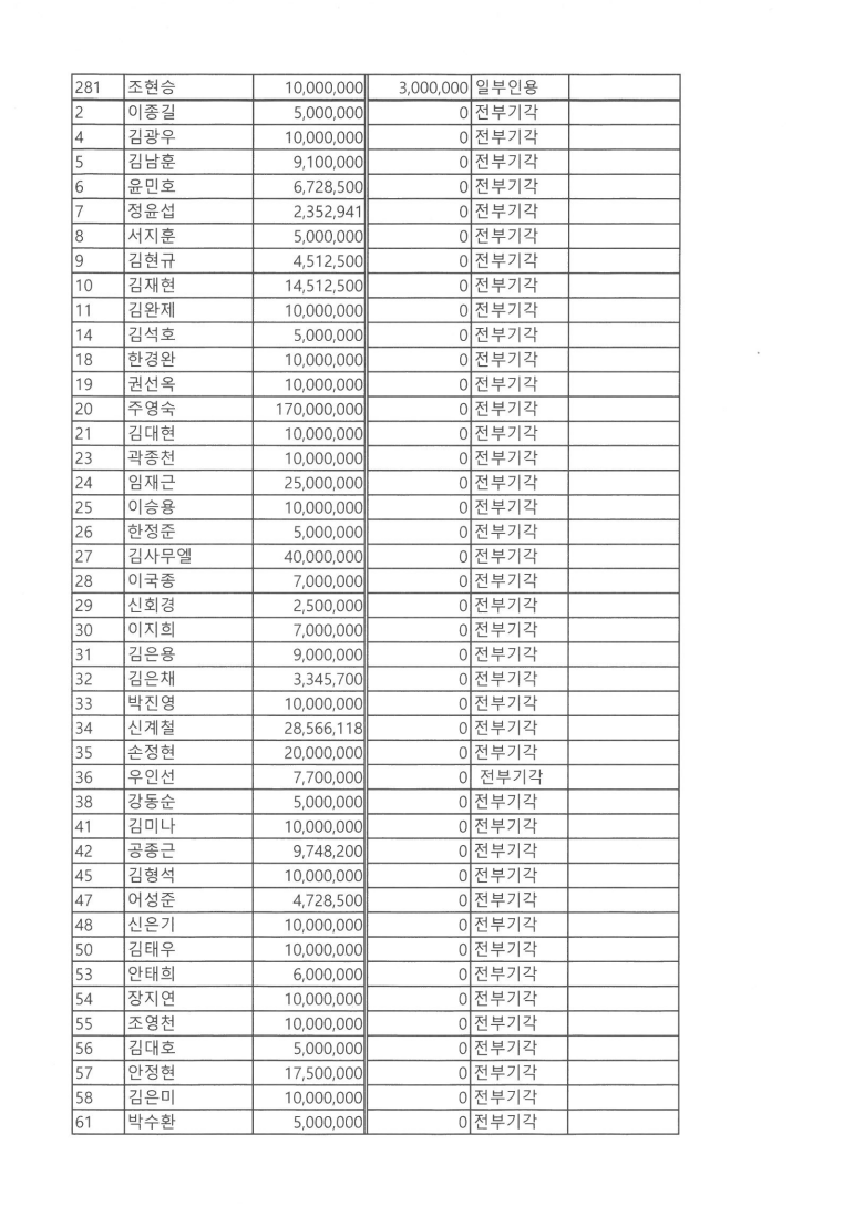 저는 전부기각으로 단 한 푼도 돌려 받을 수 없게 되었습니다. 법원에서 고위험군에 투자한 투자자의 손실로 보고 종료한 것입니다. 한푼도 받지 못하는 것을 너무나 아깝게 생각합니다.